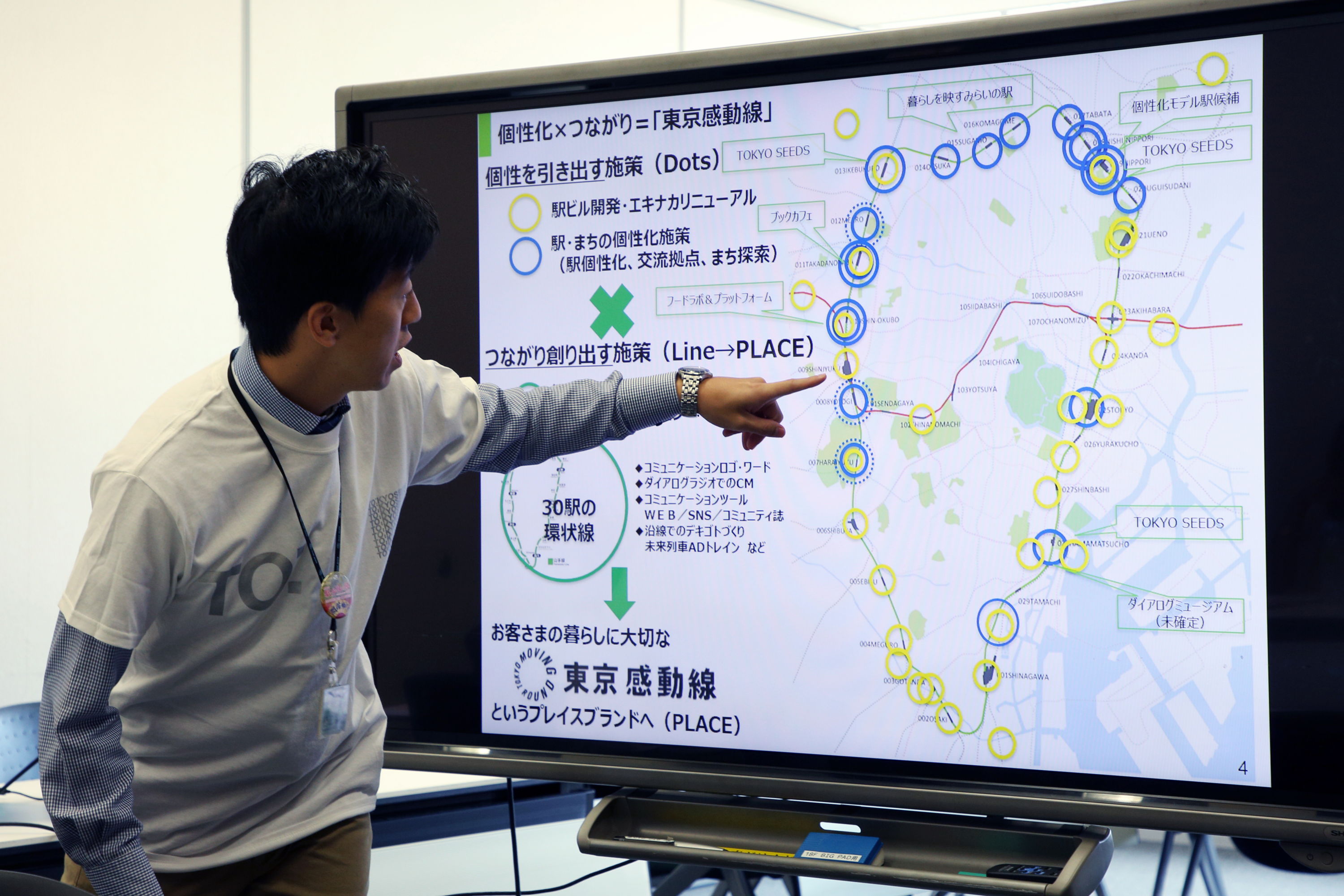 Focussing on Next 10, our initial briefing took place with teams from disparate departments within the JR East organisation including station staff, marketing, retail, tourism and planning. This afforded us all a quick but rounded introduction to the teams and workings of JR East. Importantly this also gave normally disconnected internal teams a valuable opportunity to work together in a new cross-company, collaborative setting. Each designer, along with their new JR East collaborators, were designated a different train station and locality to focus on along the Yamanote train line (my station was Hamamatsuchō in 2018, and Shinagawa in 2019).